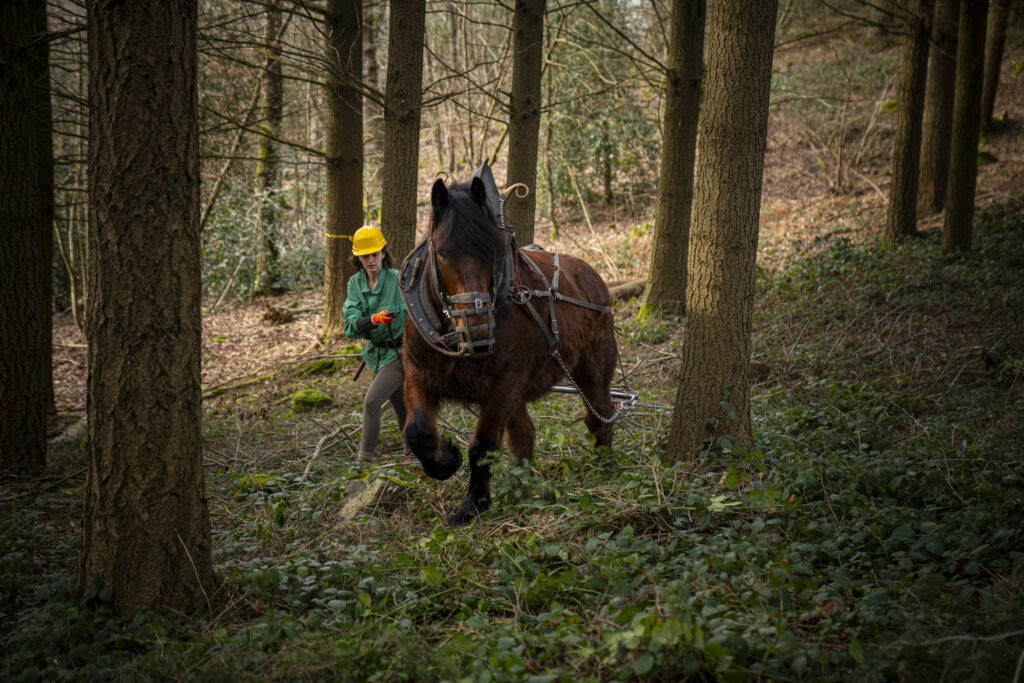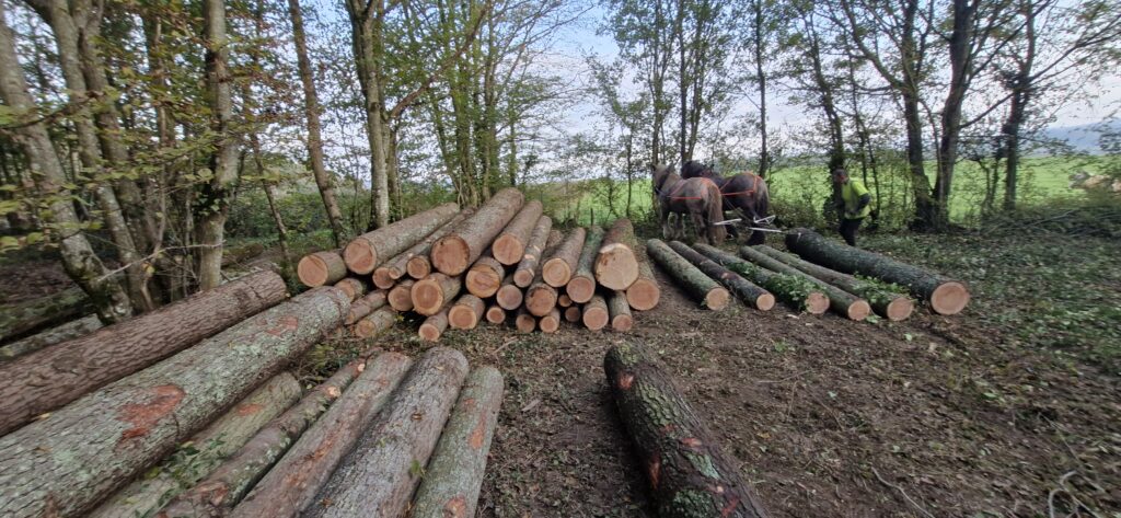 La traction animale est privilégiée afin de préserver les sols forestiers. C’est une énergie renouvelable locale qui renforce le lien entre vivants. Il n’y a pas de recours aux coupes rases, ni à des plantations en monoculture.